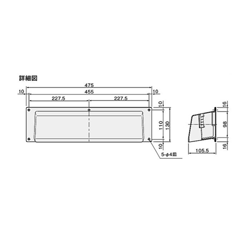 ・屋外換気口内部(通風路)は雨水の吹き込みにくい形状になっています ・取付ねじのピッチが455mmになっていますので、2×4工法のみでなく在来工法の住宅でも取り付けが容易です ・小屋裏換気口としてもご使用いただけます ・防虫網付(AES樹脂成形網) ・適応屋内換気口:KS-410P ・取付ねじピッチ:H110×W455mm