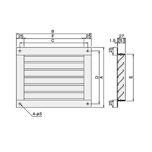[寸法]A300、B350、C326、D276、E258、F300mm [換気有効面積]379cm2 [材質]アルミニウム アルマイト処理(色:アルミニウム素地色)