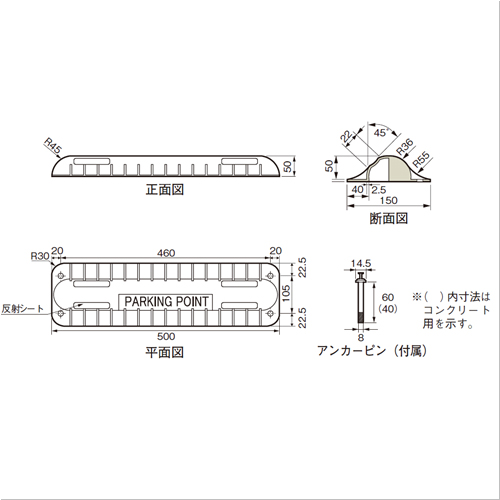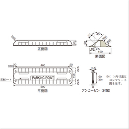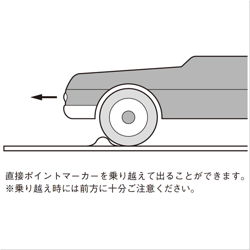 ・ストッパーが設置されていない駐車場中央付近では、駐車スペース内における位置確認がむずかしく、正しく車を止めることができない場合があります。パーキングポイントマーカー(SP-PM)は、タイヤ接触時の軽い衝撃によりドライバーに正しい駐車位置を伝えます。また、特殊な製品形状により、対面する駐車スペースに車両がない場合にはポイン トマーカー上を乗り越えて出庫することができます。 直接ポイントマーカーを乗り越えて出ることができます。 ※乗り越え時には前方に十分ご注意ください。 [色]黄(蛍光色) [サイズ]H50mm×W150mm×L500mm [重量]650g [付属部品]アンカーピン(付属) [材質]ポリカーボネート [ご注意] ・運搬諸経費は別途お問い合わせください。 ・使用頻度の激しい場所には適しません。 ・普通乗用車用です。