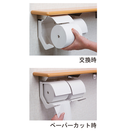 ・棚板の奥行きは130mmで、しっかり手をつくことができます。 ・手すりの取付け位置は自由に設定できます。 ・上フタを上げた際、フタが固定されるので、片手で簡単にペーパーの交換ができます。