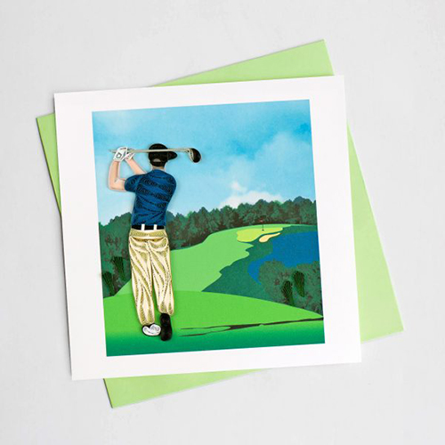 ゴルファーと青空、グリーンが描かれたとてもさわやかなカードです。 ゴルフが好きな方のプレゼントに添えるのはもちろん、ゴルフのお誘いに使ってもいいですね。 退職される方に、「これからはご自分の趣味、時間を大切に」というメッセージを込めて贈るのも素敵です。 二つ折りの内側にメッセージが書き込めます。 カードの中面は白無地です。 緑色の封筒がセットです。 [サイズ] ・カード:15cm×15cm ・封筒:16cm×16cm [重量]約45g [原産国]ベトナム