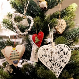かわいらしいハートと素朴なクリスマスツリーが優しい雰囲気です。