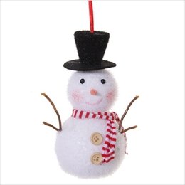 フワフワの雪のような素材で作ったスノーマンのオーナメント。
