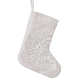 アイボリーホワイトのソックスに白いガラスビーズであしらわれた雪の結晶。