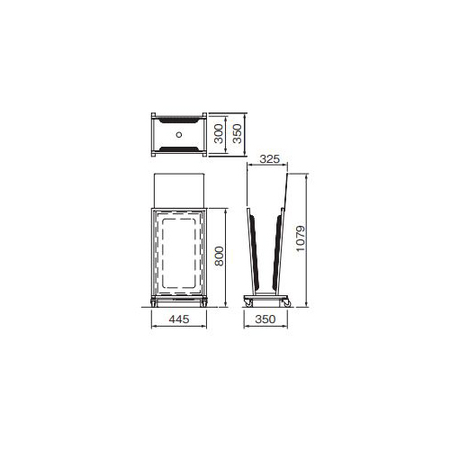 [型式]1WAYスタンダードミニタイプ [材質]ステンレス [仕上げ]ヘアーライン [サイズ]H800(1079パネル含む)×W445×D350mm [重量]13.6kg [特長]電気を使わないエコでクリーンな傘のしずく落としです。