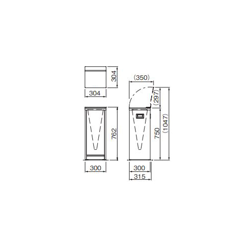 [型式]4面はっすい [材質]ステンレス [仕上げ]ヘアーライン [サイズ]H762(1047パネル含む)×W304×D304mm [重量]17.4kg [特長]電気を使わないエコでクリーンな傘のしずく落としです。