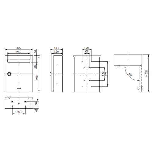・防雨仕様ですが、屋外への設置は強い風や諸条件によって雨水が浸入することがあります。 ・施工は背面取付け専用です。側面取付けはしないでください。(ポスト同士を横連結する以外は、側面穴は使用しません。) ・アパート用部屋番号シール・戸建住宅用ポール取付用部材(オプション)については、お問い合わせください。 ・納期:ご確認ください。