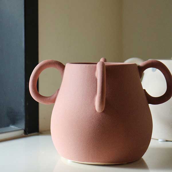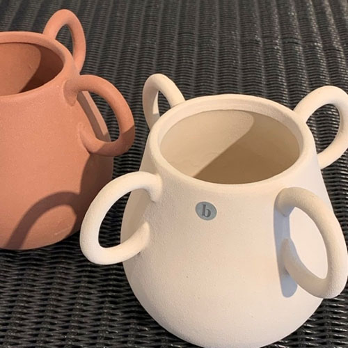 丸いハンドルのデザインが印象的なフラワーベース。