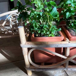 [素材](ポット)テラコッタ、(フレーム)ラタン