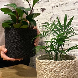 ナチュラルなジュートのカラーとブラックカラーをご用意しており、色違い・サイズ違いで並べても素敵です。