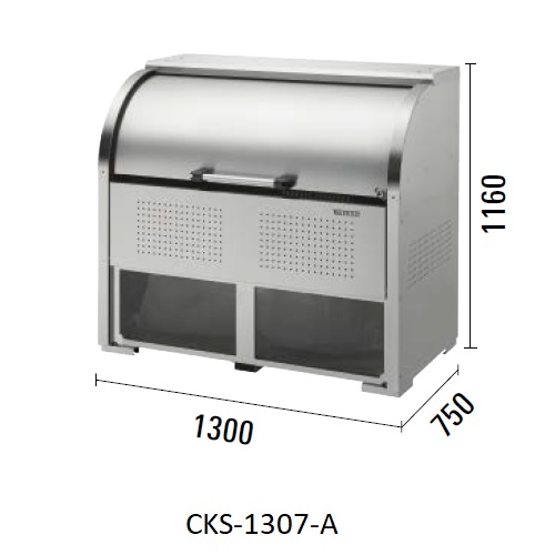 [品番] CKS-1307-A [サイズ] W1300mm×D750mm×H1160mm [容量] 800L [本体質量] 58kg [ゴミ袋(45L)集積目安] 約17袋 [世帯数の目安] 約8世帯 [材質] ステンレス [仕様] 組立式 [オプション] 仕切板、別売りです(仕切板 CKS-PT)