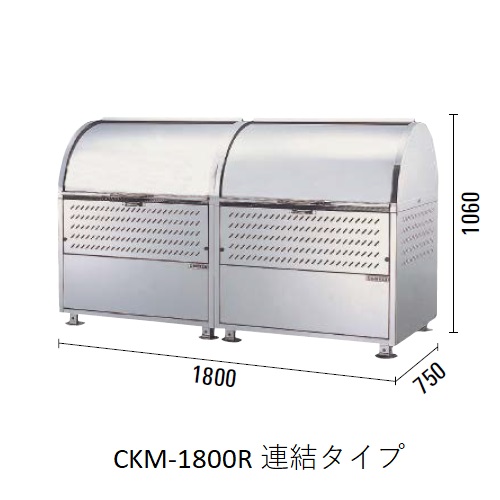 [品番] CKM-1800R 連結タイプ [サイズ] W1800mm×D750mm×H1060mm [容量] 1100L [本体質量] 64kg [ゴミ袋(45L)集積目安] 約24袋 [世帯数の目安] 約12世帯 [材質] 18-8ステンレスタイプ [仕様] 完成品