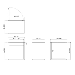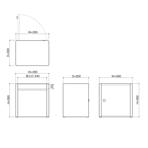 防滴型 前入れ後出しオールステンレスポスト(2ブロックサイズ) オーソドックスな手座員の中に、角にアール形状を用いた優しい印象にしました。 多量の郵便物にも対応する大容量サイズです。 [サイズ]W390×H390×D300mm [重量]8.0kg [仕様] 本体・扉:SUS304 1.0t(底板1.2t) 投入側パネル:SUS304 1.0t フラップ:SUS304 0.6t 鍵:シリンダー錠(KEY-16) 仕上:HL仕上げ