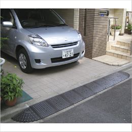 [強度] ゴム製で衝撃を吸収するので強度も抜群(4トン車対応) [安定] ゴム製で重量があり、幅300mmとコンパクトなので安定性に優れています [耐久] ゴム製でノンスリップの表面加工なので滑りにくく耐久性に優れています [弾力] 凸凹下地にもなじみやすく弾力性があります [消音] ガタつき音がまったくありません