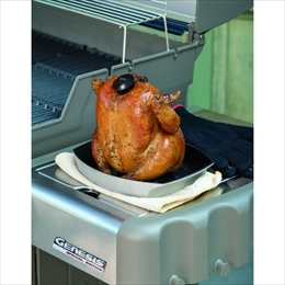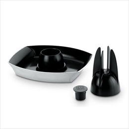 特許取得済みのロースト用キットです。 鶏肉の中に水分と風味を吹き込み、丸鶏の調理に最適です。 くぼみ部分にビールやワインなどのドリンクを入れて焼けば香りづけも可能。 丸鶏以外にもデザートやサイドディッシュなど、アイディア次第で使い方は自由自在です。 内側のセラミックコーティング加工でこびりつきを防ぎ、また分解可能ですのでクリーニングも非常に簡単です。 [サイズ]W20.32×D25.1×H17.27cm [お手入れ方法]食器洗浄機での洗浄可能