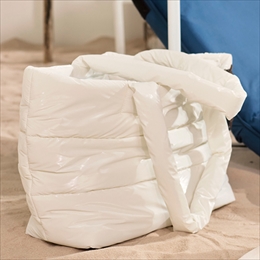 同シリーズのパファーポーチに鍵、スマホ、化粧品などの小物類を入れてペアで使っても◎
