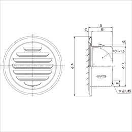 [サイズ]A:200.5、B:67、C:9.5、D:145、E:57.5、F:20、G:5 [重量]586g [材質]SUS304 [仕上げ]カチオン電着塗装+アクリル焼付塗装 [仕様]網付・FD付 [アミ付]10メッシュ[適用パイプ]SU100 100×106 [有効開口面積]47.4平方センチメートル