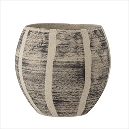 ナチュラルカラーのストライプ柄の鉢カバー。