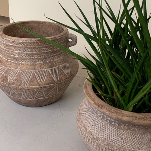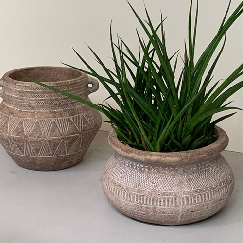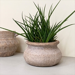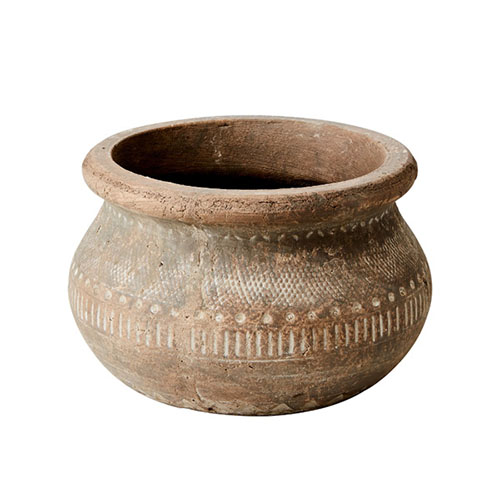 コロンと丸いシルエットのテラコッタ製の鉢カバー。