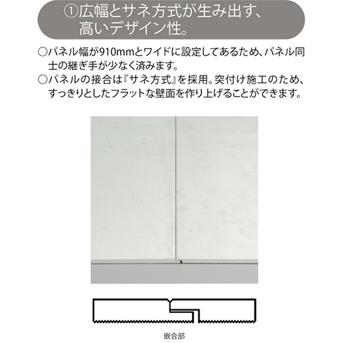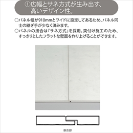 [サイズ]910×2450mm [推奨部材]ミルキーホワイト [表面仕様]IJ印刷+抗菌UV塗装 [材質]発砲塩化ビニル樹脂 [仕様]パネルジョイントはサネ方式