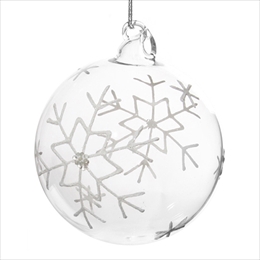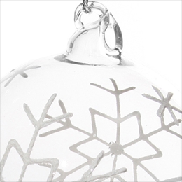雪の結晶のモチーフを閉じ込めたガラスオーナメント。