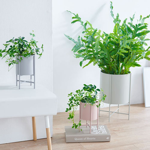 鉢カバーと同じカラーのスタンドが付属していて、高さを変えて3WAYで使えます。