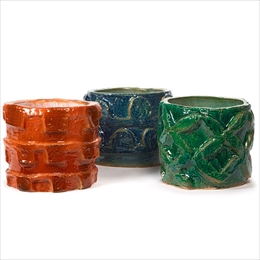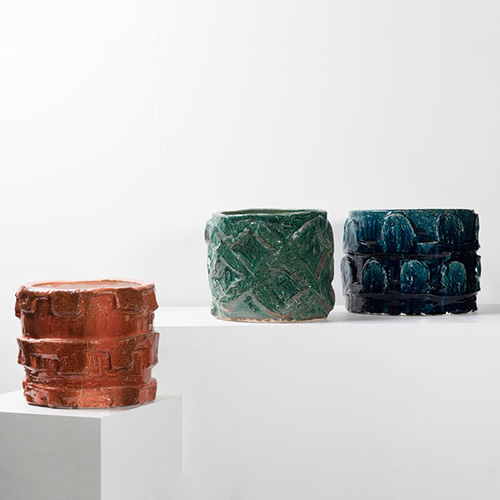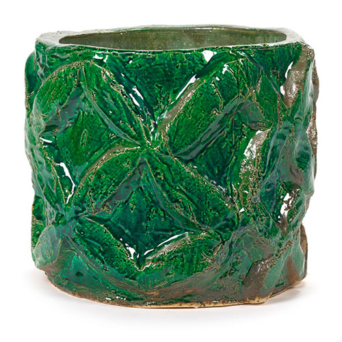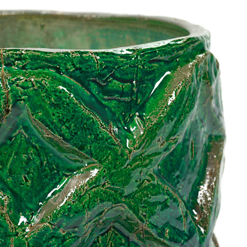 凹凸のあるレリーフを組み合わせたグリーンの鉢カバー。
