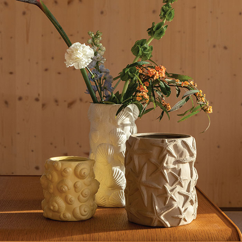 夏らしい貝殻の模様が特徴的なフラワーベース。