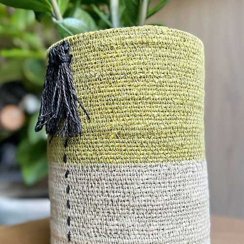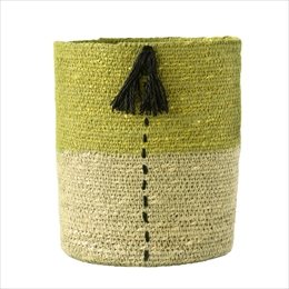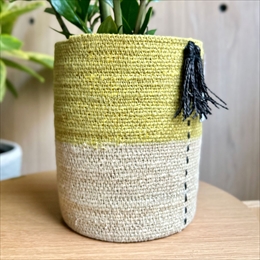 CLOVER(クローバー) シーグラスバスケット ウィズフリンジ イエロー&ナチュラル