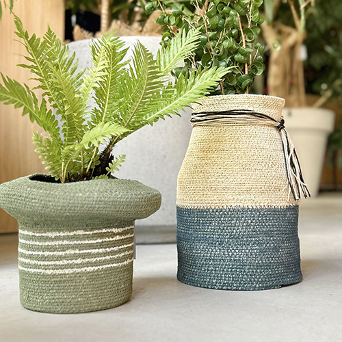 衣類や雑誌、スリッパなどを収納したり、鉢カバーとして植物と一緒に使ったりと様々にお使いいただけます。