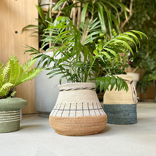 衣類や雑誌、スリッパなどを収納したり、鉢カバーとして植物と一緒に使ったりと様々にお使いいただけます。