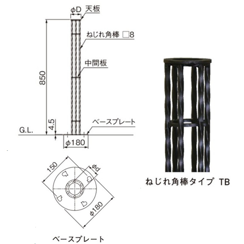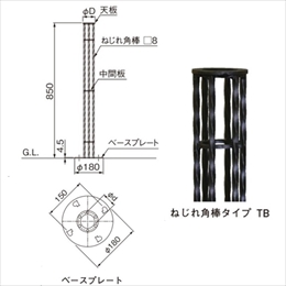 スチール製アレンジポスト ねじれ角棒タイプ RING0685-TB-AR(白)