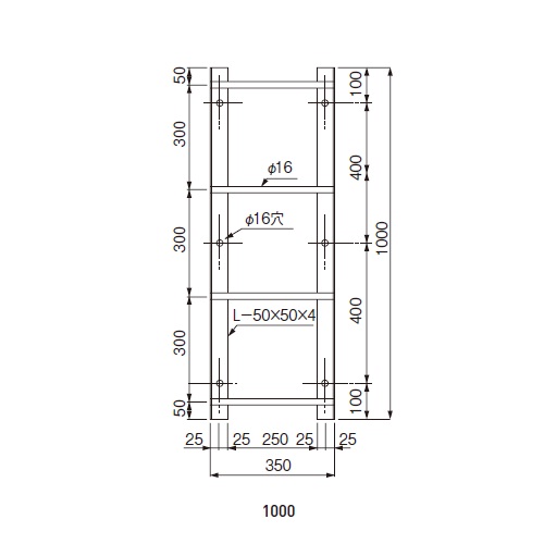 [サイズ]H:1000、W:350、D:150 [本体重量]約10kg [材質]SUS304 [仕上げ]アングル:ヘアーライン、丸棒:ピーリング
