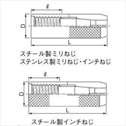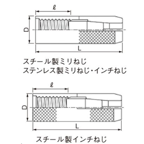 [材質]ステンレス製(SUS304系) [ねじの呼び径]M106 [アンカー外径]D20.0mm [全長]L60mm [ねじ部長さ]小文字のL23 [穿孔径]20.5mm [アンカー埋込み長さ]60mm [穿孔深さ]60mm