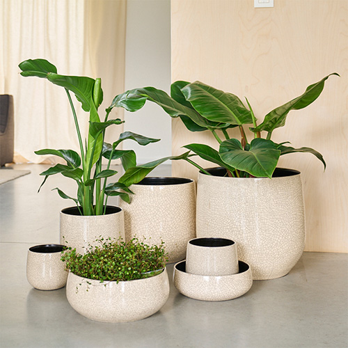 シンプルなデザインと光沢のある質感が植物をいっそう引き立てます。