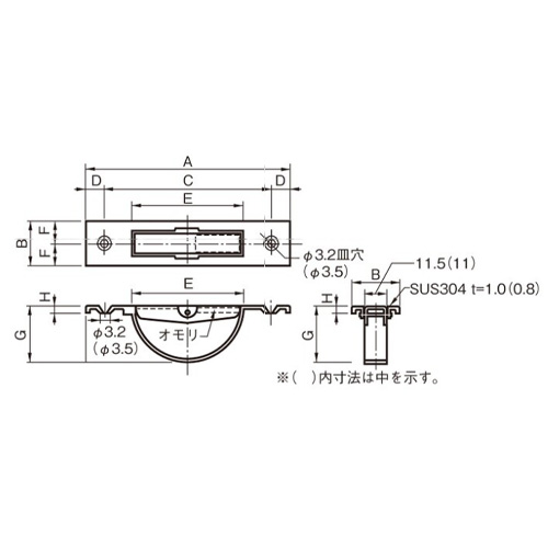 [サイズ]A100mm、B23mm、C82mm、D9.0mm、E53.5mm、F11.5mm、G28mm、H3mm [本体重量]30g [付属品]SUS十字穴付皿木ネジ 3.1×20:2本 [材質]SUS304 [仕上]研磨 [耐荷重(2個あたり)]10kgf