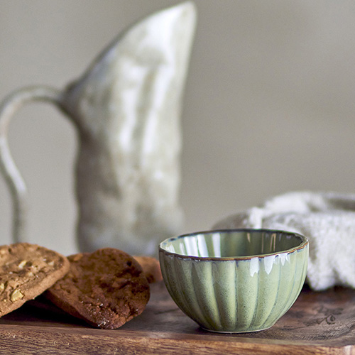 淡いグリーンが柔らかな印象のボウル。 釉薬の色合いと縦に入ったラインが、上品で洗練された表情を演出します。程よい厚みで手に馴染みやすく、安定感のある使い心地も魅力。和洋問わずさまざまな食卓に自然と溶け込み、日常にさりげない彩りを添える一品です。 [サイズ]D12×H6.5cm [重量]0.3kg [材質]セッ器 [備考] (使用可能)食器洗浄機、電子レンジ (使用不可)オーブン