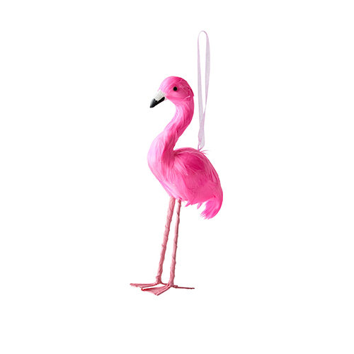 ふわふわの羽が印象的なフラミンゴのオーナメント。