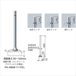 [材質]SUS304 [仕上]研磨#400 [サイズ]Φ48.6×H850mm [仕様(1)]右片フック [仕様(2)]カギ付(南京錠25mm) [重量]3.5kg