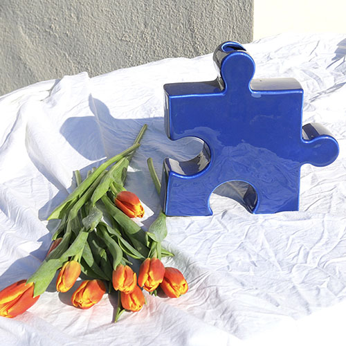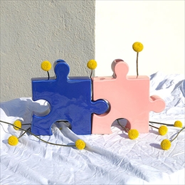 ビビットな色味がお部屋のアクセントになるパズルピースのフラワーベース。