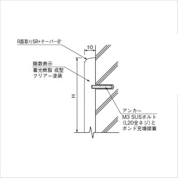 ・消灯直後は明るく発光します。30分後〜1時間では、徐々に発光が薄くなります。1時間後〜10時間では、文字の形が目視できる残光状態です。 [品番/呼称]NST01 [サイズ]H150mm、W80mm、D10mm [重量]110g [材質]エポキシ系樹脂・蓄光ガラスビーズ [仕上げ]クリアー塗装 [ご注意] ・文字を発光させるためには、事前に光りを当てておく必要があります。 ・アンカーと接着にて施工します。
