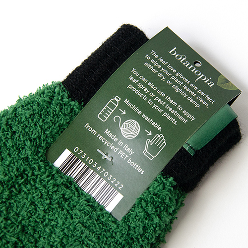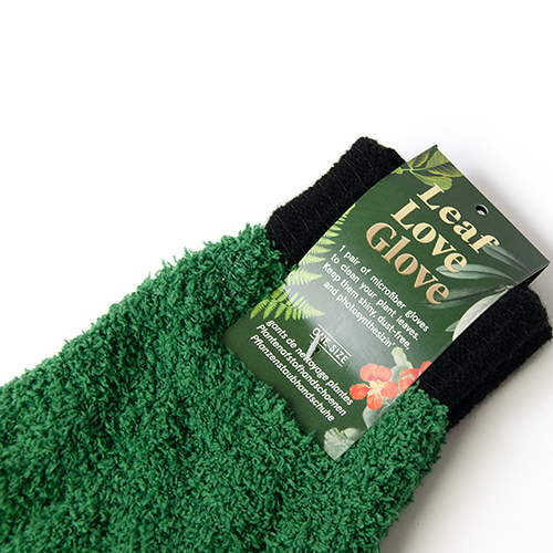 植物の葉についたホコリをやさしく拭き取ってくれるマイクロファイバーグローブ。