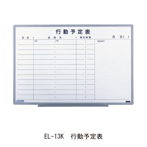 ・場所を選ばない薄型,軽量設計のスタイリッシュなホワイトボードです。樹脂フレームを採用し、従来のアルミフレームボードに比べ重量が半分以下になりました。 ・マグネットも使用でき、しかも超軽量・薄型設計によりどこでも気軽に設置ができ、持運びも容易です。 ・タテ・ヨコどちらでも使用できます。(無地のみ) ・取付け部位は脱落防止構造となった安全設計です。(取付ネジ別途) ・グリーン購入法適合商品です。 [色]ホワイト [品番/呼称]EL-14K [サイズ]W600mm、H456mm [重量]1.0kg [材質]スチール [ご注意] ・納期:ご確認ください。 ●備考:行動予定表(10名分)