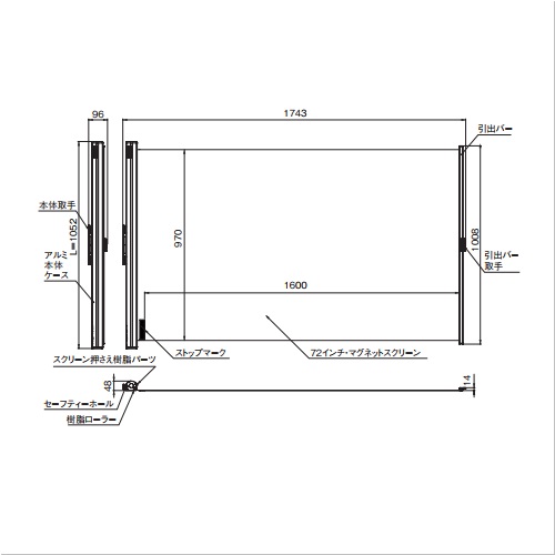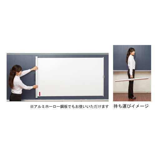 ・黒板やスチールキャビネットにシワもなくきれいにまっすぐ貼れるロールスライド方式のマグネットスクリーンです。 ・ケース一体式マグネットスクリーンはスクリーンを引き出すのではなく、本体ケースのローラーを利用し、スライドさせスクリーンを貼付ける機構です。 ・ギラつきを抑えた高精細・広視野角のスクリーンです。 ・プロジェクタースライド式電子黒板システムとの組合せに最適です。 ・ホワイトボード機能も兼ね備えております。 [色]シルバー [品番/呼称]MGS-072 [サイズ]本体ケース外寸:W96mm×H4mm8×D1052mm、スクリーン有効寸法:W1600mm×H970mm スクリーン有効寸法:W1600×H970 [重量]2.7kg [材質]本体ケース:アルミ サイドキャップ:ABS [ご注意] ・スクリーンのスライド貼付けについては、赤シールが出たら着磁固定してください。 ・貼付けの際は、取付ける壁が平滑であるか十分に確認し、着磁を確認しながらゆっくりとスライド固定してください。 ※黒板は別売りになります。 ※アルミホーロー鋼板でもお使いいただけます