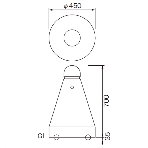 [品番/呼称]PMB-101T-MS [サイズ]Φ450mm×H700mm [重量]40kg [材質]SUS304 [仕上げ]ウレタン塗装