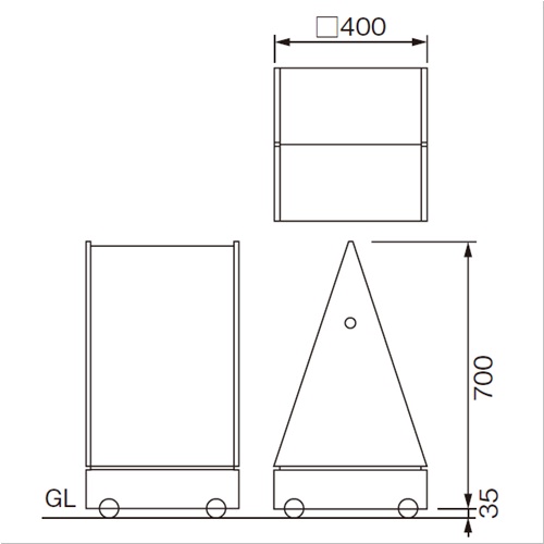 [品番/呼称]PMB-102T-MS [サイズ]□400mm×H700mm [重量]40kg [材質]SUS304 [仕上げ]ウレタン塗装