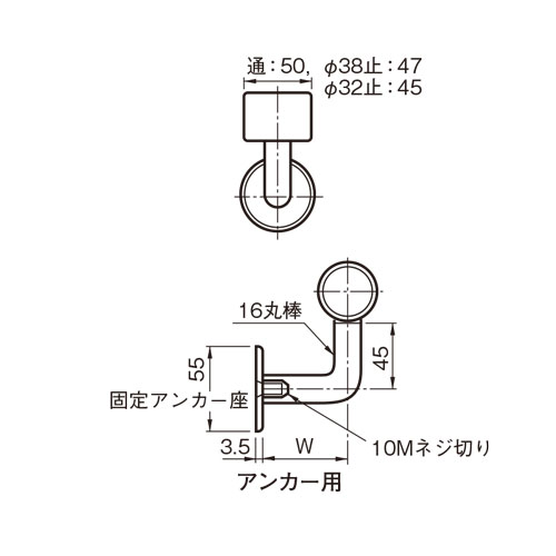 ・ガラス座を使用することにより、ガラス(12〜18mm)に取付け可能です。別途お問い合わせください。 ・アンカー用の場合、任意の方向で固定できません。接着剤を併用するか木ネジ用をご使用ください。
