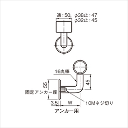 ・ガラス座を使用することにより、ガラス(12〜18mm)に取付け可能です。別途お問い合わせください。 ・アンカー用の場合、任意の方向で固定できません。接着剤を併用するか木ネジ用をご使用ください。