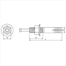 [材質]スチール製 [ねじの呼び]M12 [全長:L]60mm [ねじ長さ:L小文字]20 [最大取付物厚]6mm [穿孔径]12.7mm [アンカー埋込み長さ]40mm [穿孔深さ]52以上 [座金付ナット二面幅S]19mm