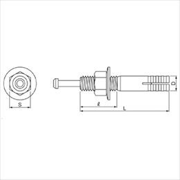 [材質]ステンレス製(SUS304系) [ねじの呼び]M10 [全長:L]100mm [ねじ長さ:L小文字]30 [最大取付物厚]46mm [穿孔径]10.5mm [アンカー埋込み長さ]40mm [穿孔深さ]50以上 [座金付ナット二面幅S]14mm